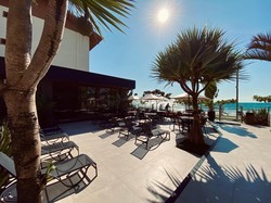 Piscina aquecida e semi-olímpica de frente para a praia