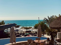 Sala ampla integrada com vista para o mar
